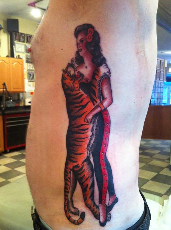 Nick Colella tattoo of an old Ralph Johnson painting from a south State Street arcade.
