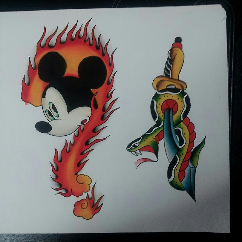 the burning mickey, and snake dagger